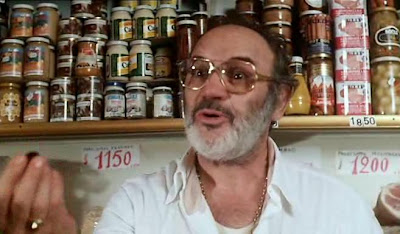 Augusto: Senti sto' prosciutto t'ho detto è dorce... è un succhero... ah Sergio 'o senti?!?! E st'olive 'e senti, queste so' greche so', aho! Greche... e 'nnamo... e daje so' greche... so' bone, come so'? Dì la verità?!
